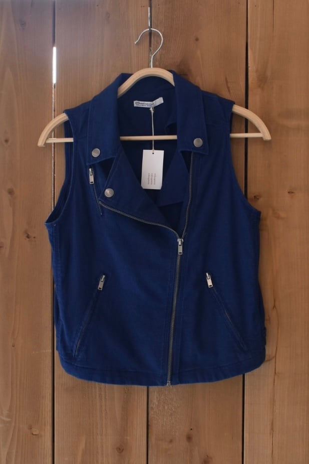 モーターサイクルジャケット、いわゆるライダースのフロントディテールを採用したベスト
