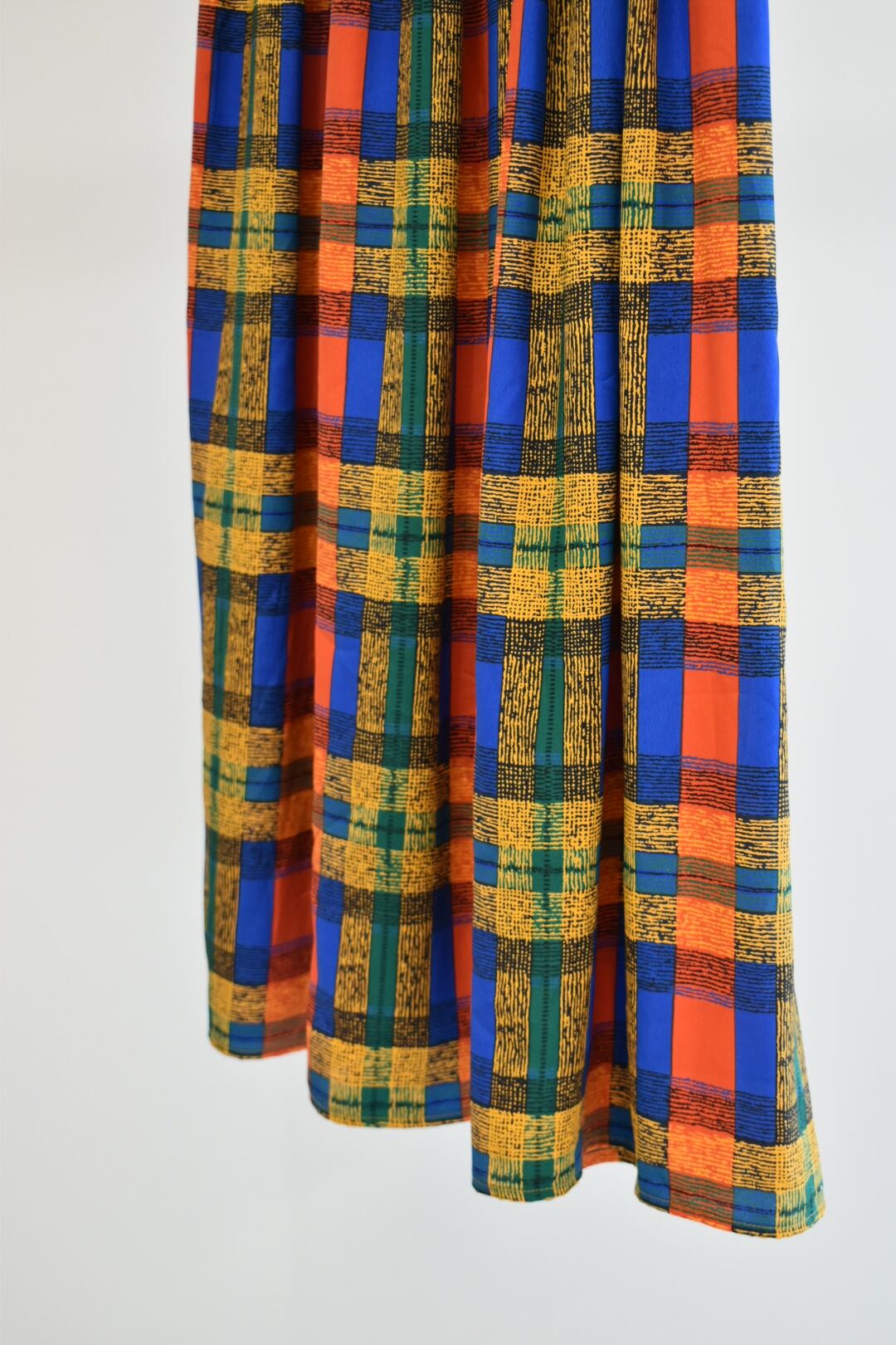 ウエスト部分はプリーツですが、裾にかけて形状記憶加工されていないことにより綺麗なドレープも演出できる一着