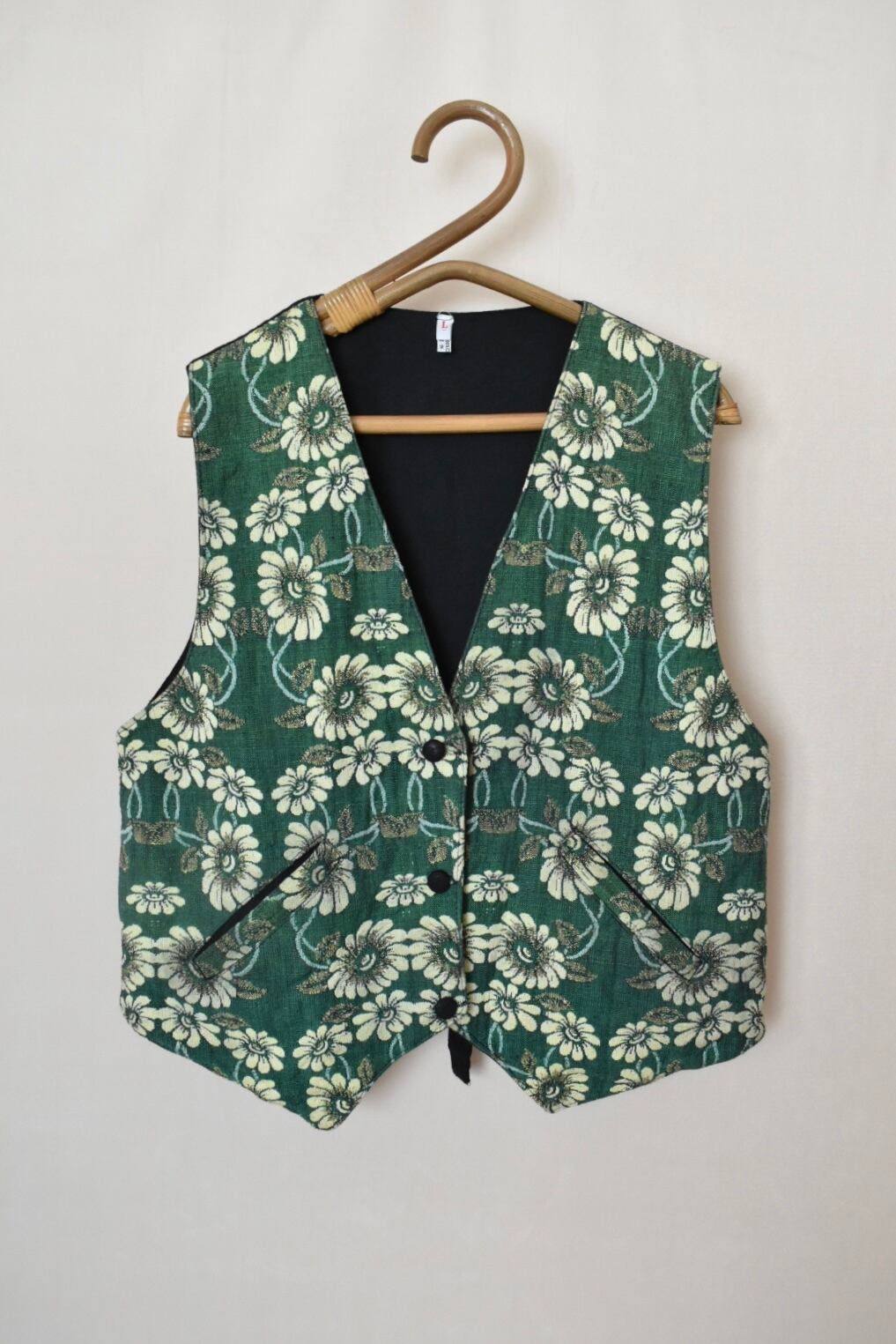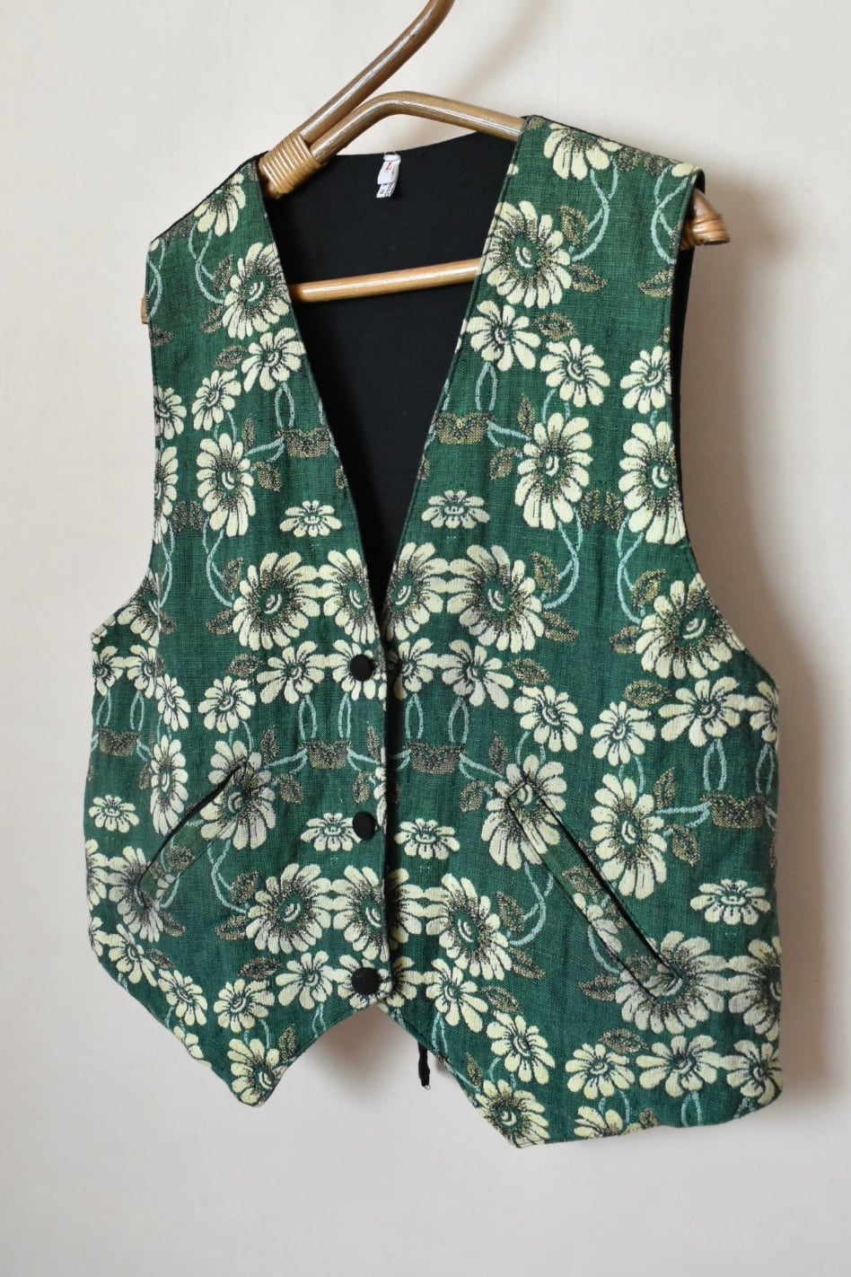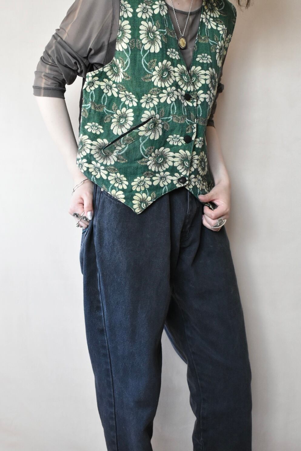 フロント全面ジャガード織の90'sボタニカルベスト。