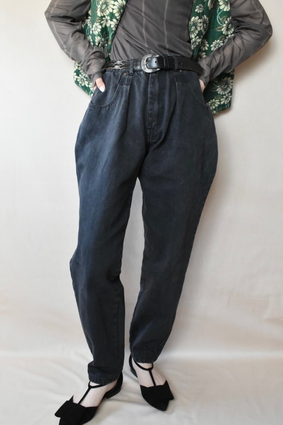 balloon black denim pants