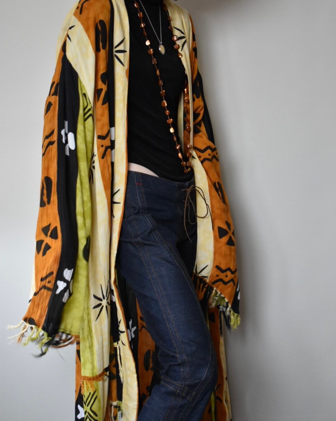 肩幅57cm 身幅74cm 着丈113cm 袖丈60cm(フリンジ含まず)