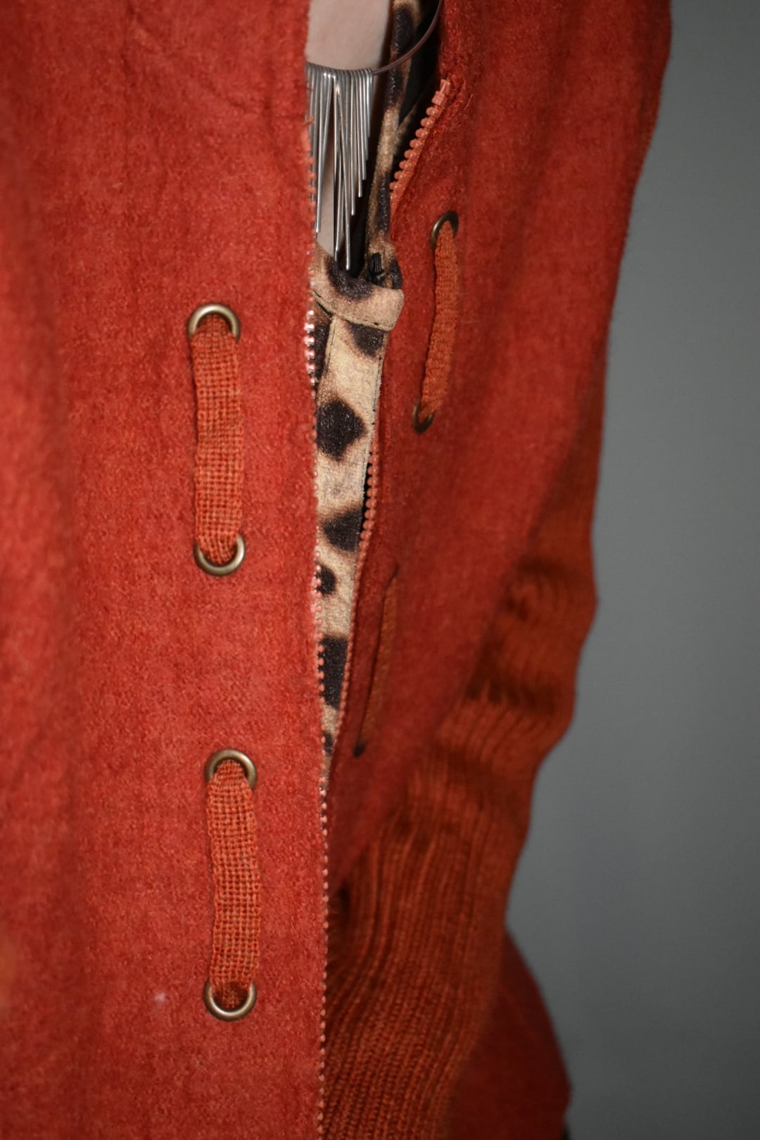 ジップサイドにはハトメから通るコード