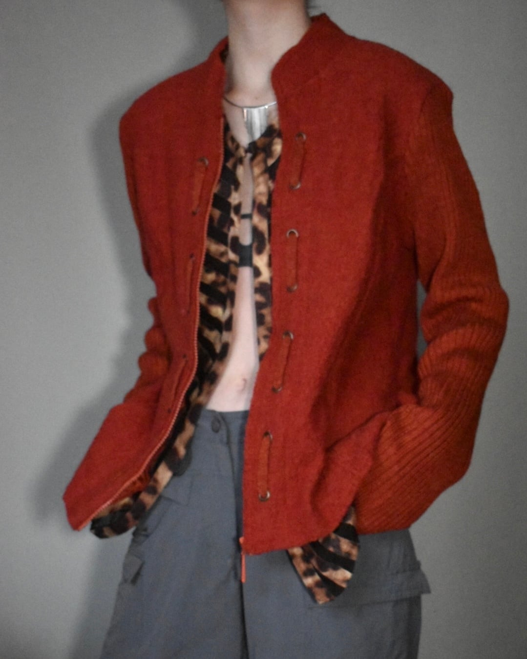 80s full zip designed knit