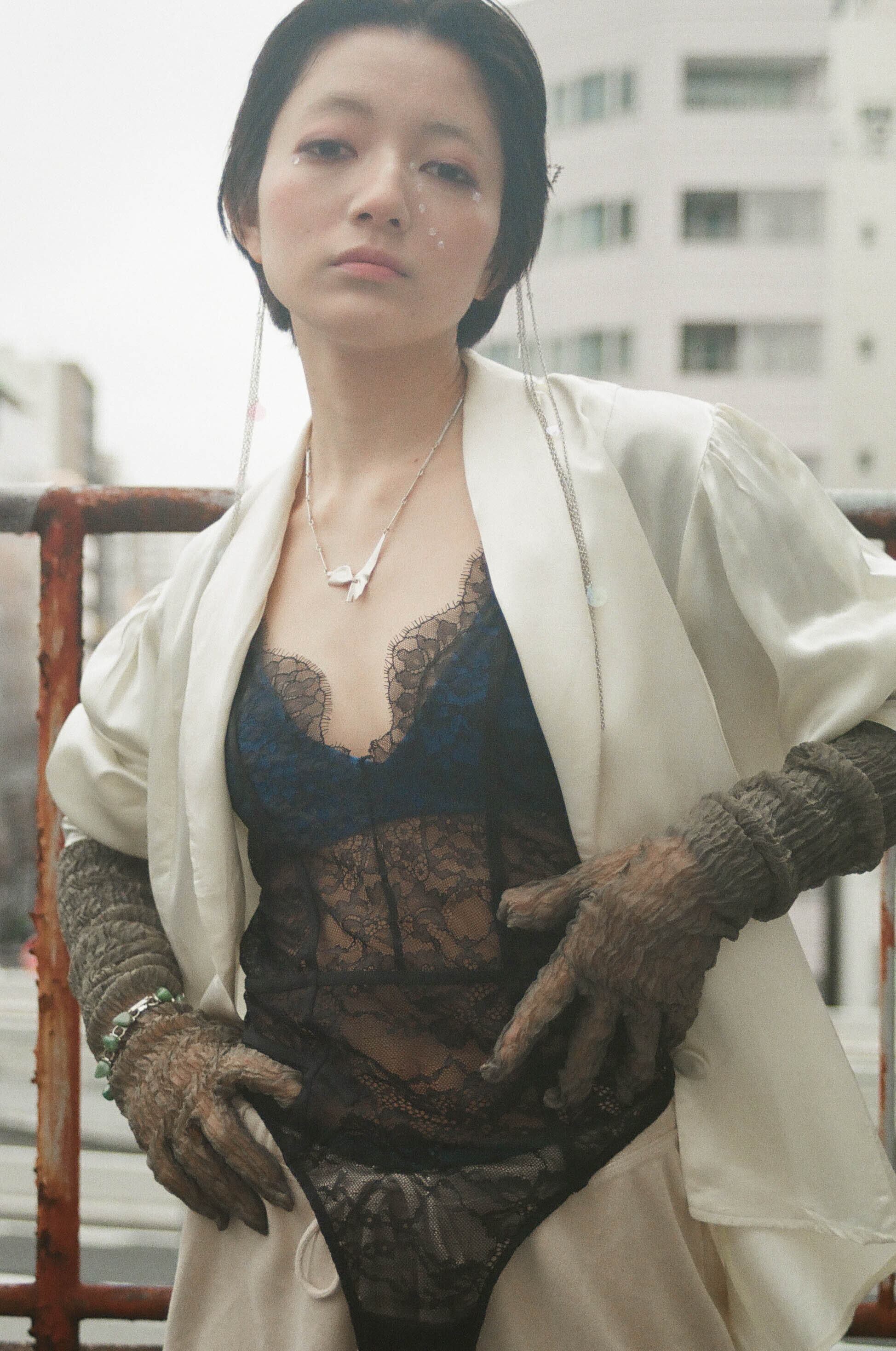 コルセットのように身体に沿うシームが、ただ「着る」服から「魅せる」服として機能します。