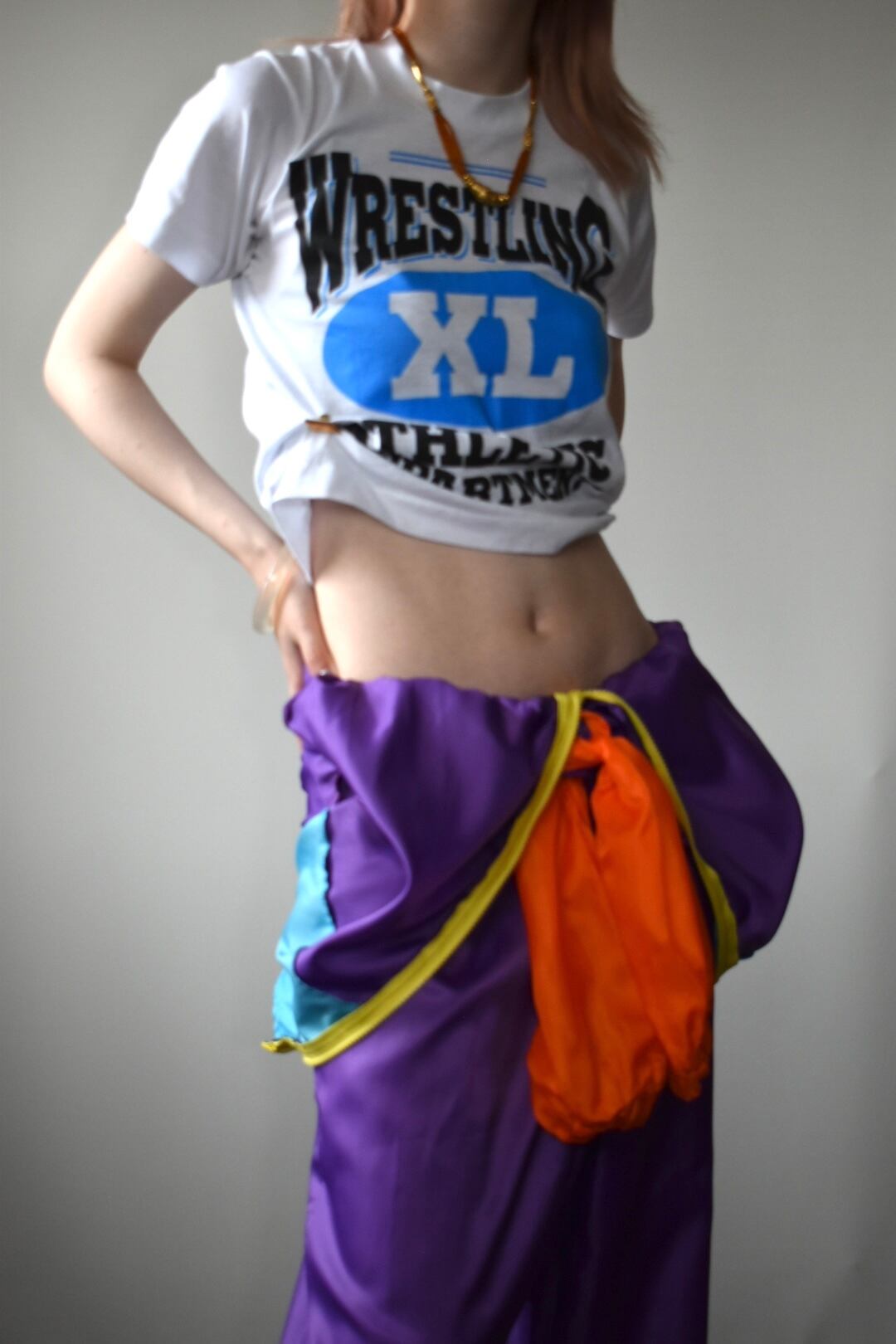 ローライズとの相性はもちろんのこと、ハイウエストのボトムスと合わせるときは思い切ってピンズやブローチでひだを作り、留めてみるスタイリングも良いかもしれません。