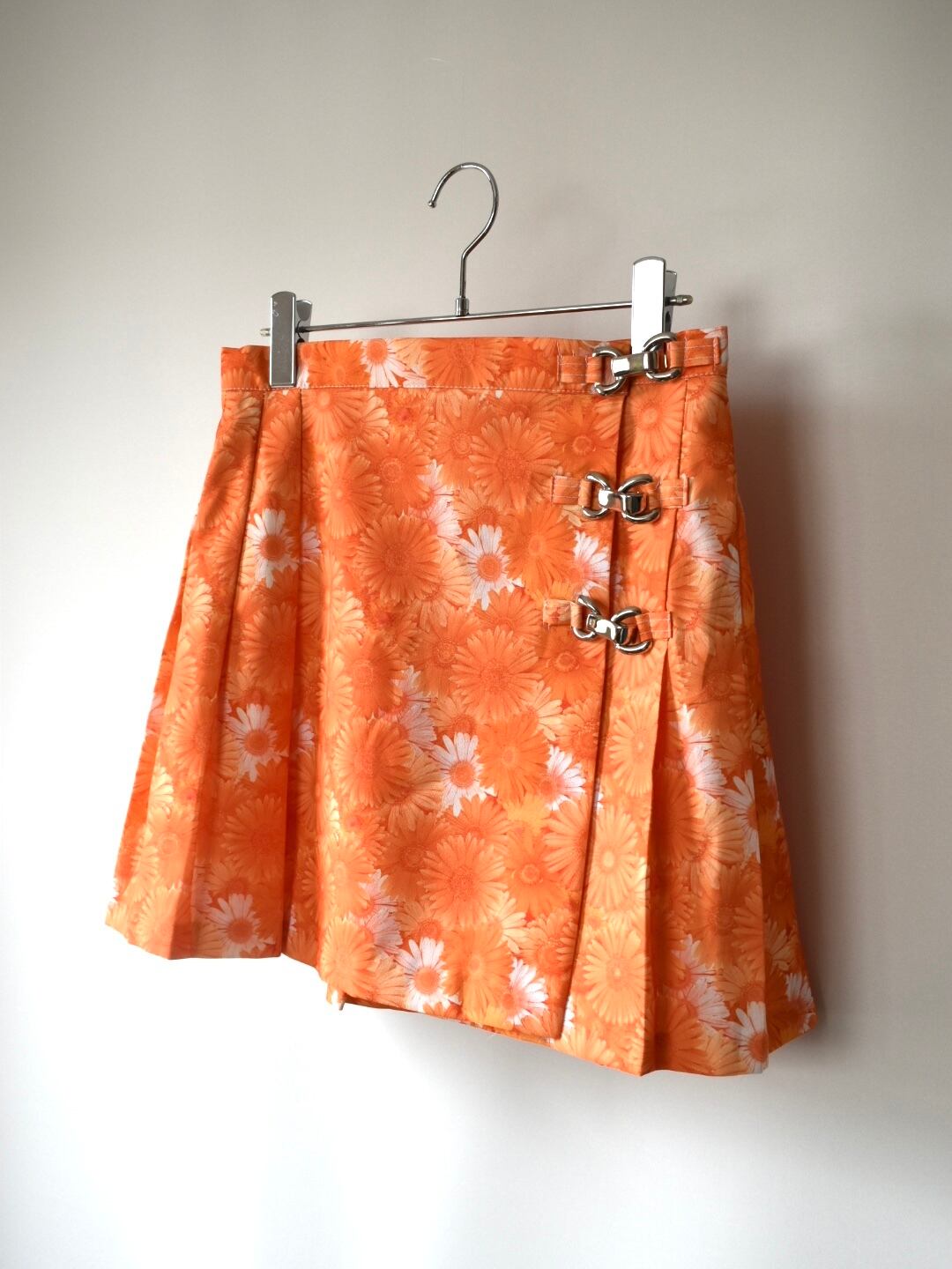 鮮明なオレンジカラーのプリーツスカートはGAL感があってかなり好みです