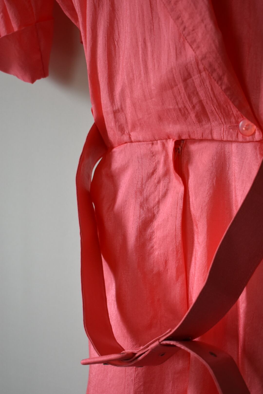 ベルテッド、ベルトホールのハトメまでピンク、細部まで追求している感じがとても伝わるアイテム
