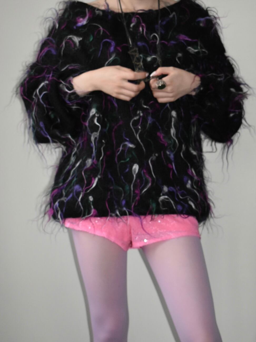 毛足の長いヤーンがぴょんぴょんと飛んでいるのがとても可愛いです。