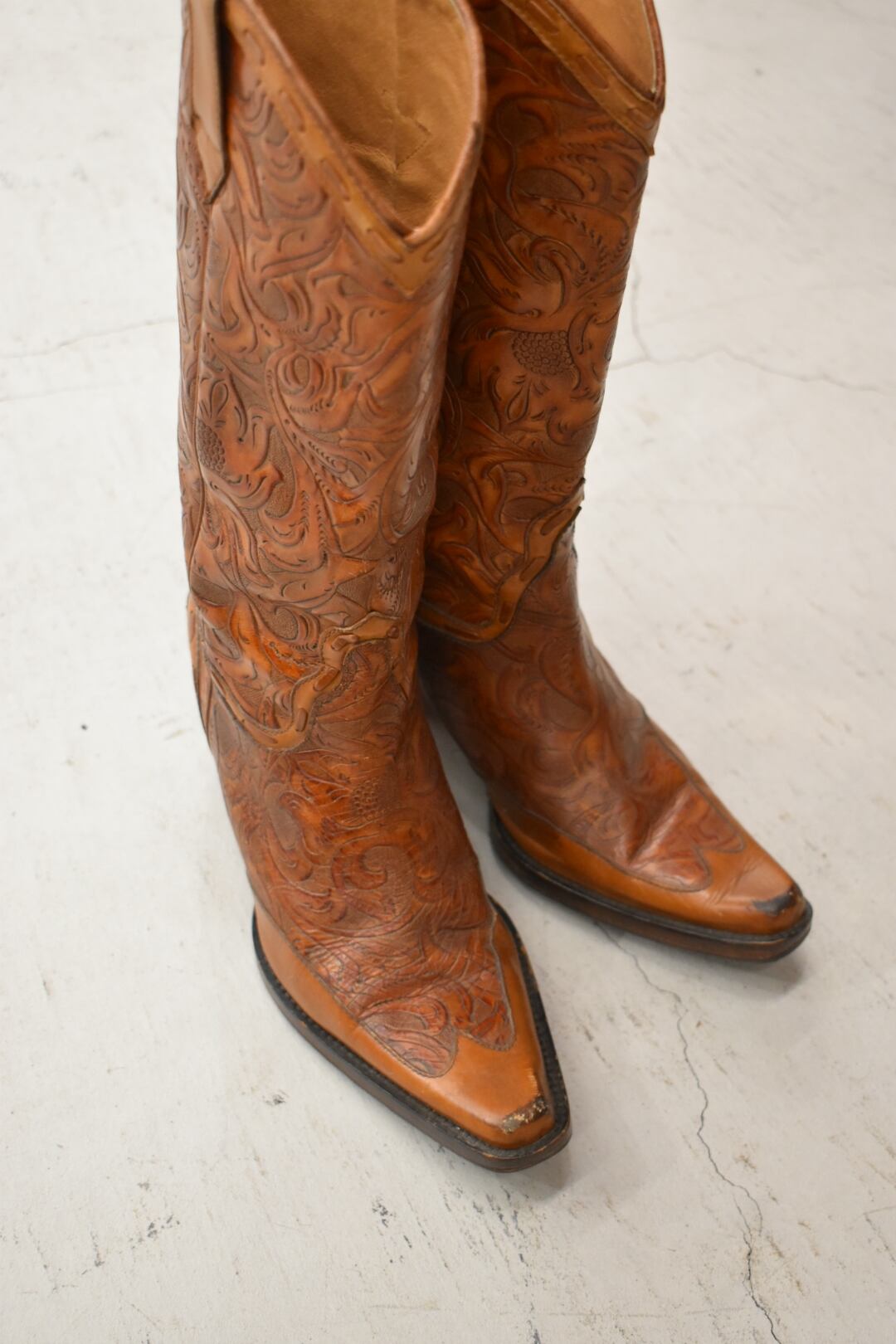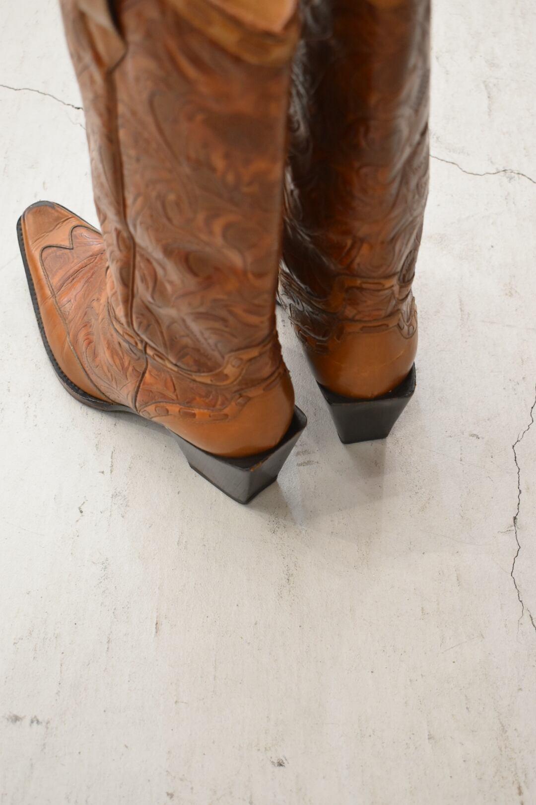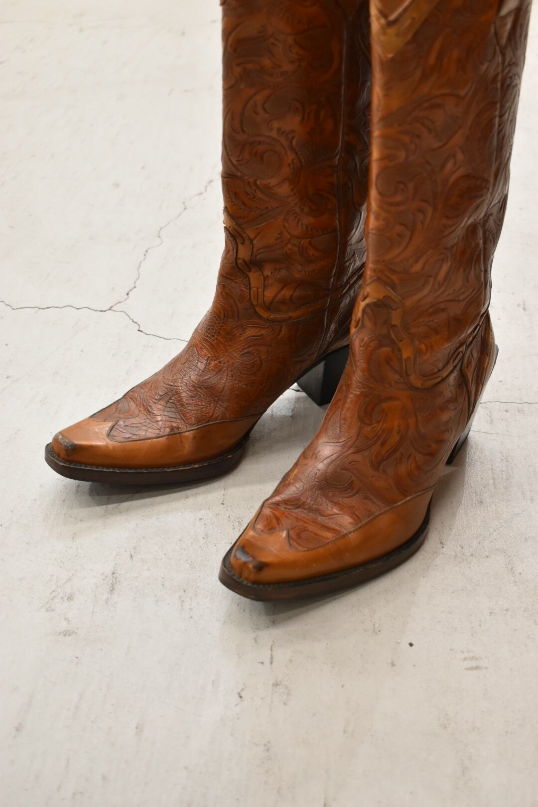 Curving leather western boots