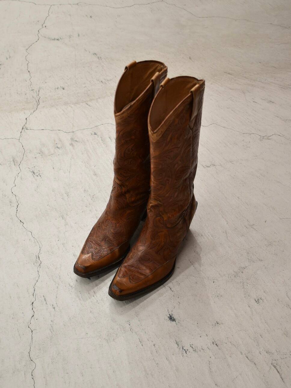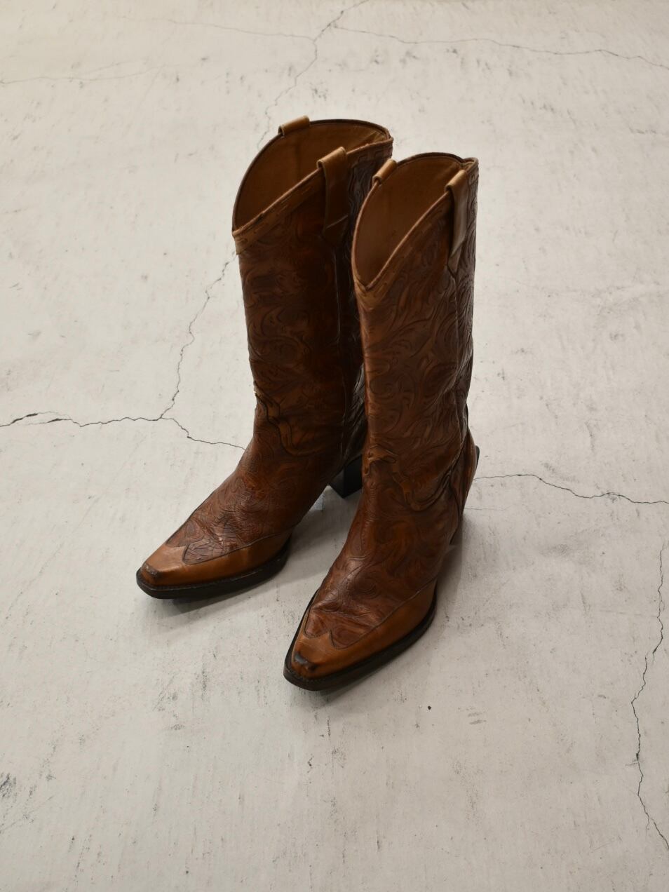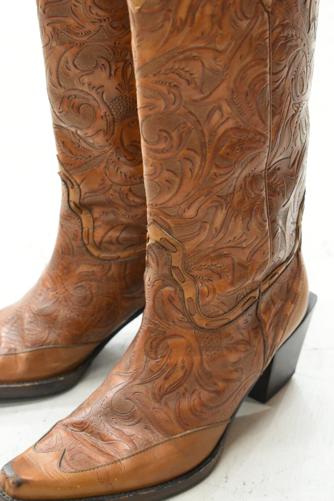 Curving leather western boots