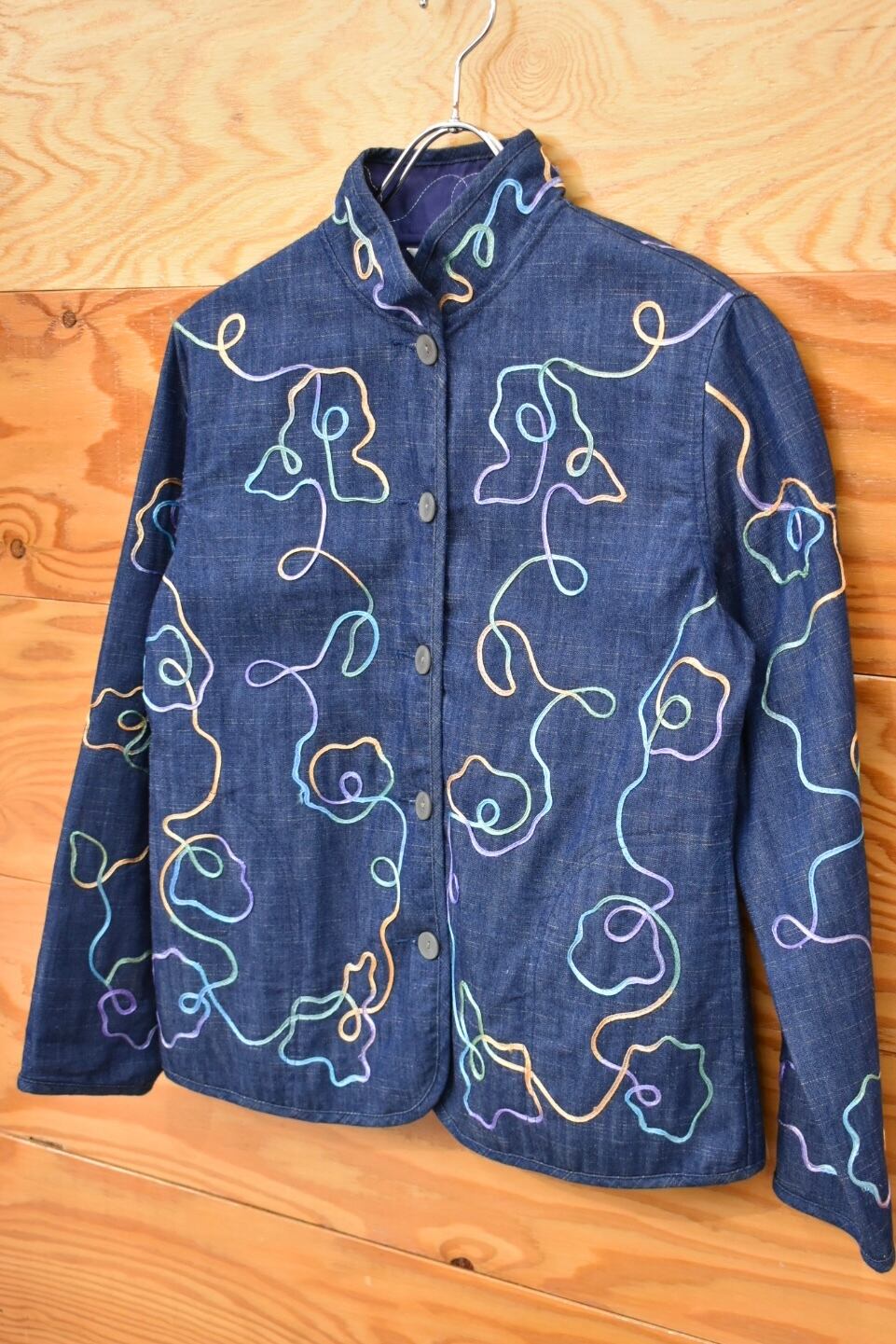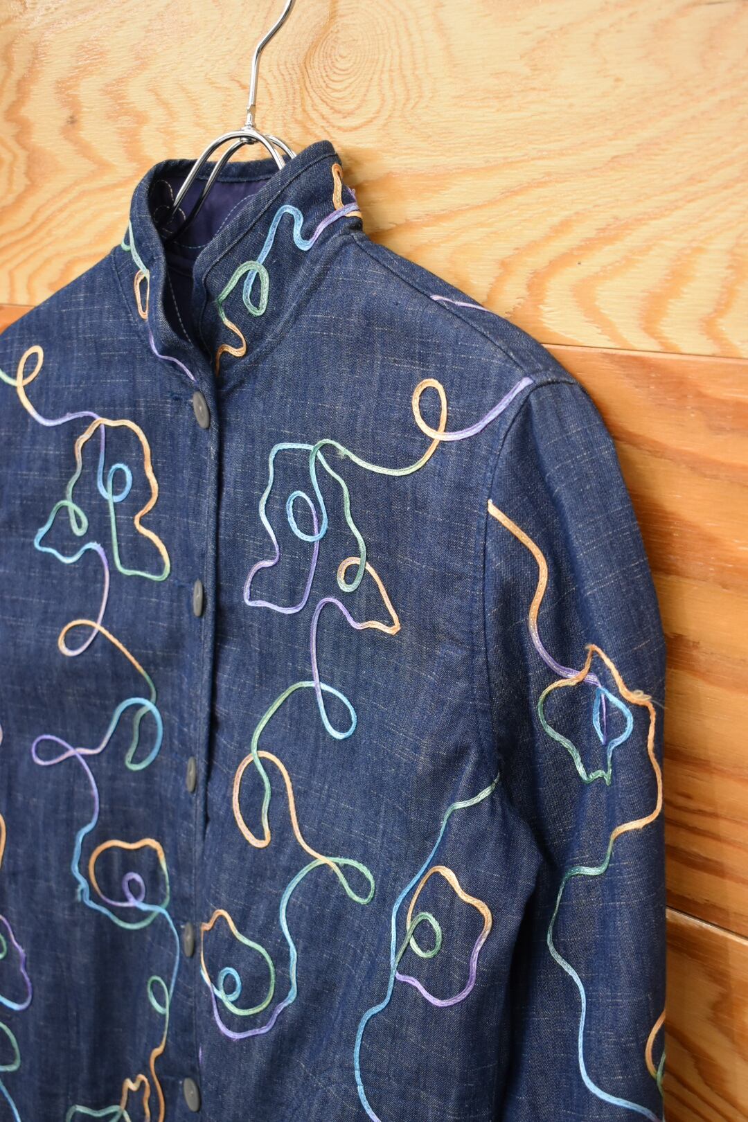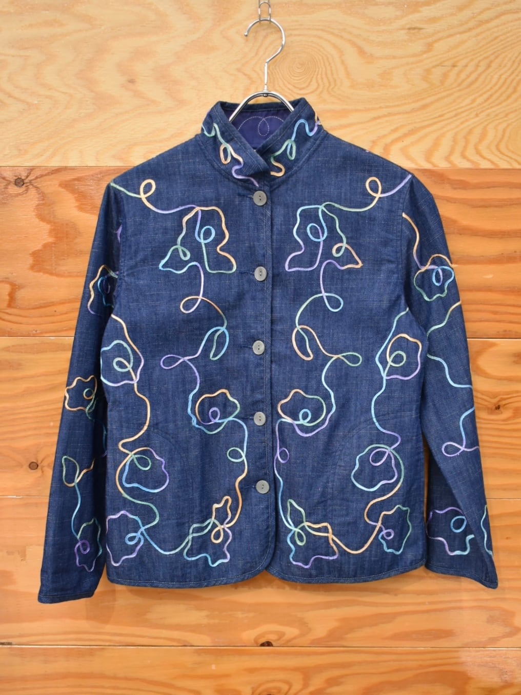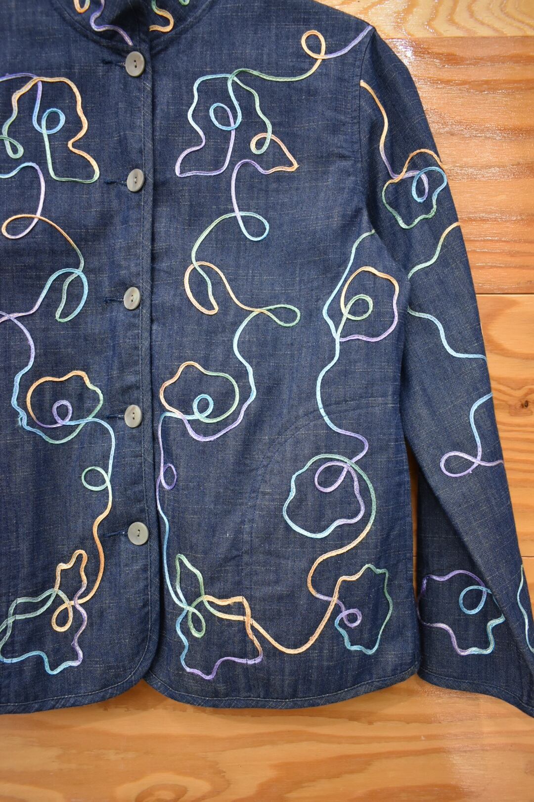 グラデーションのリボンが全面にあしらわれたスタンドカラージャケット