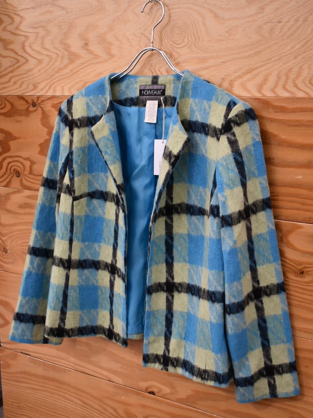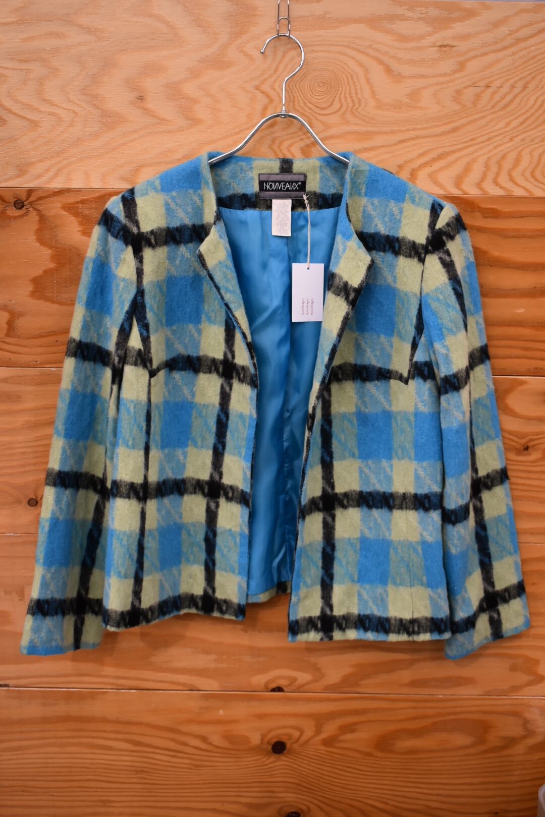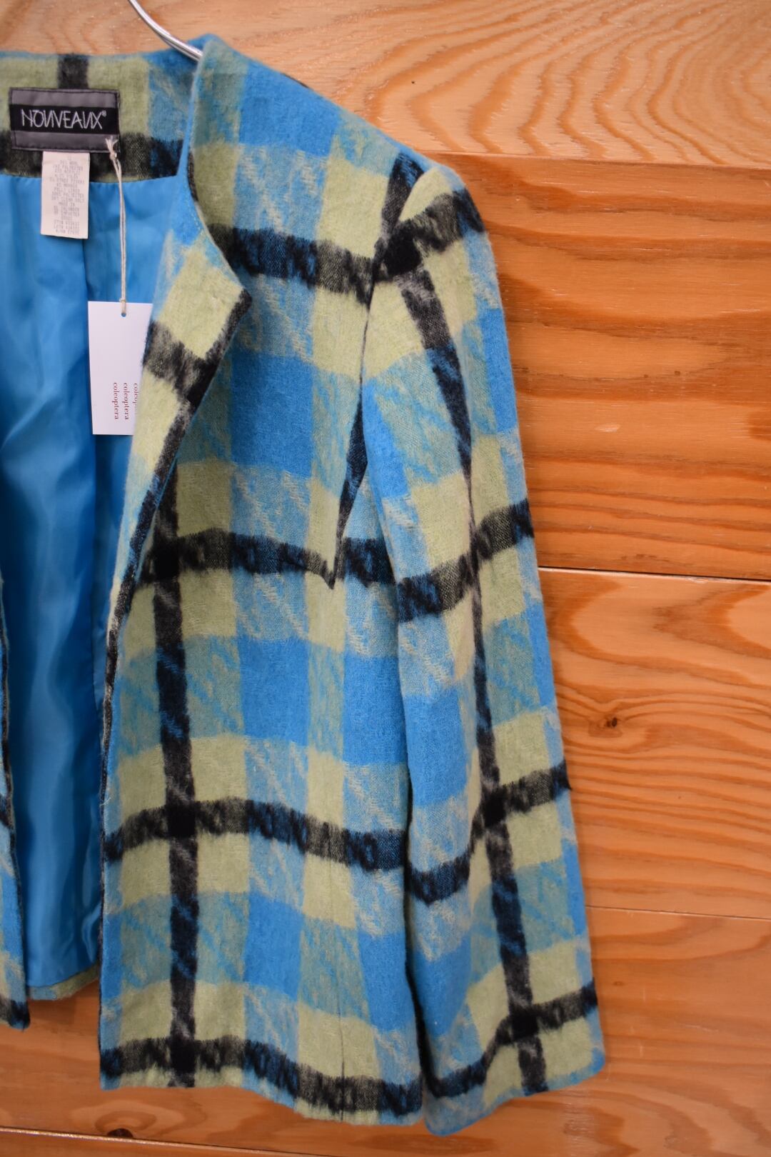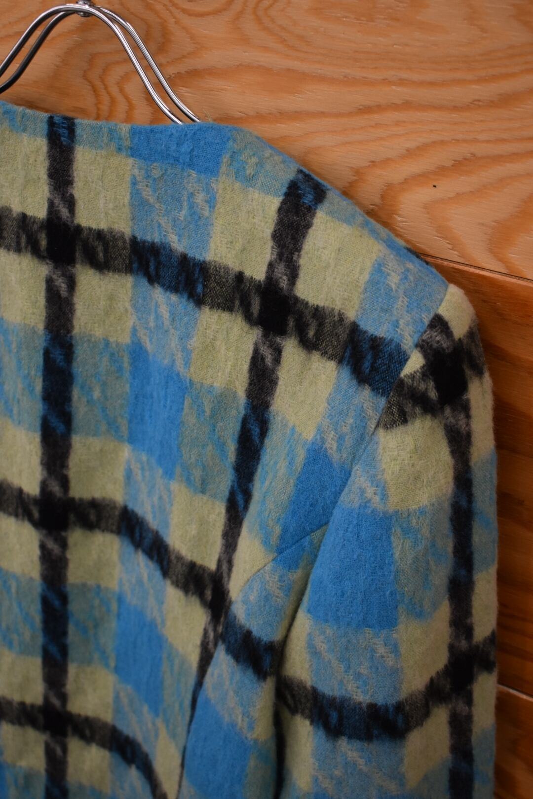ライトブルーのボディーにグリーンがかったクリームのチェック配色