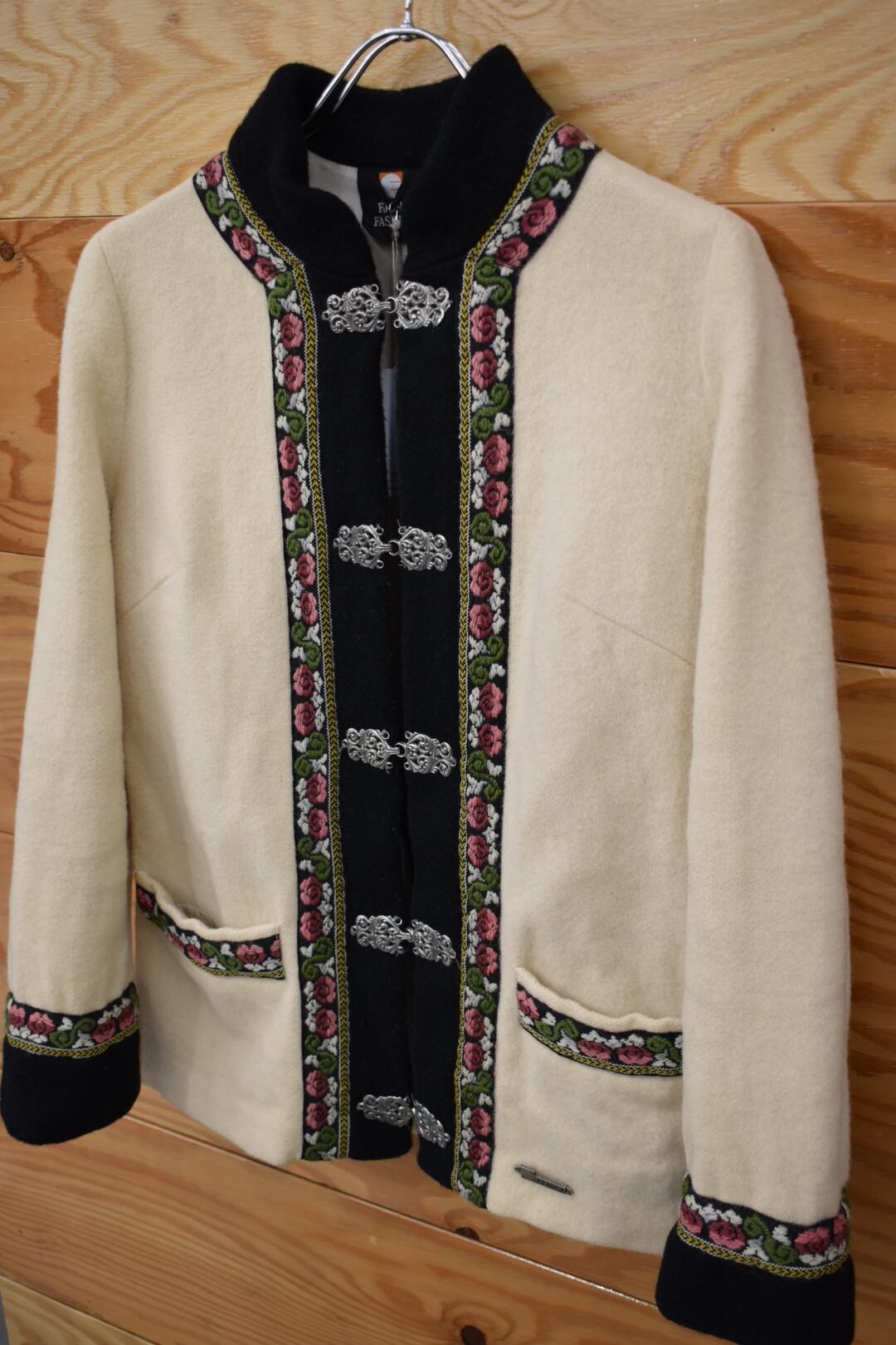 "A.S EVEBØFOSS" wool embroidered Mao Collar jacket